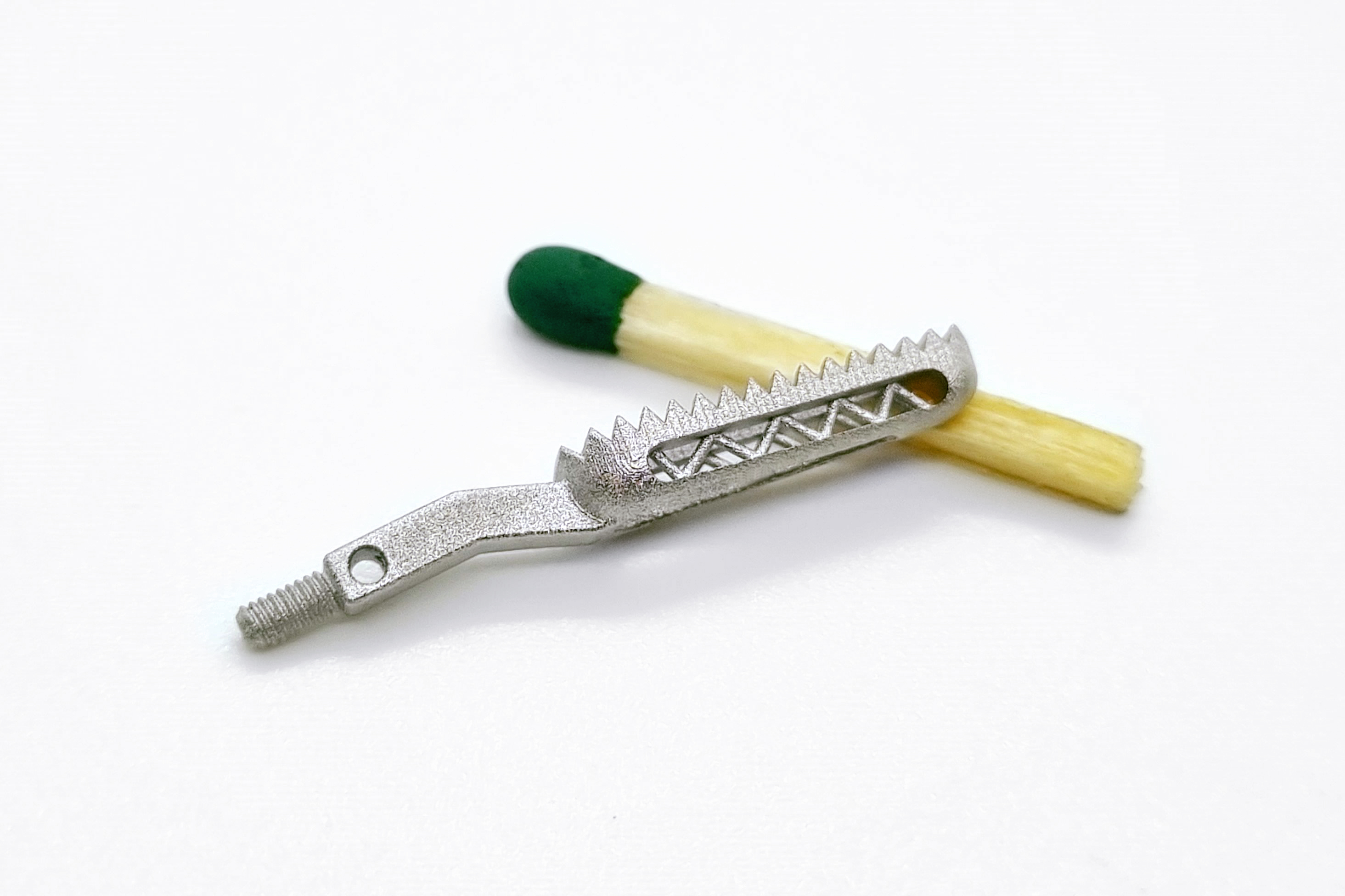 Lithography-based Metal Manufacturing (LMM) is a process for manufacturing high-precision, small metal components. In this process, the starting material consisting of metal powder and a photopolymer is stored in a material container. The mixture has a "butter like" consistency at room temperature. When heated, it becomes liquid and can be applied evenly and in thin layers to the building platform with the aid of a heated coating blade. This is locally exposed by a projector and the photopolymer hardens in the exposed areas. This process is repeated layer by layer until a Grünling is formed. To remove the Grünling from the material block, it is heated to about 50 °C, causing the unexposed material to melt and flow off. The material mixture that has flowed off can be reused for further printing processes without loss. Thermal debinding of the photopolymer and sintering of the parts are carried out in a two-stage process. The sintered parts are approx. 20 % smaller than the printed Grünling, whereby the exact sintering shrinkage factor depends on the material composition used and has very good reproducibility.